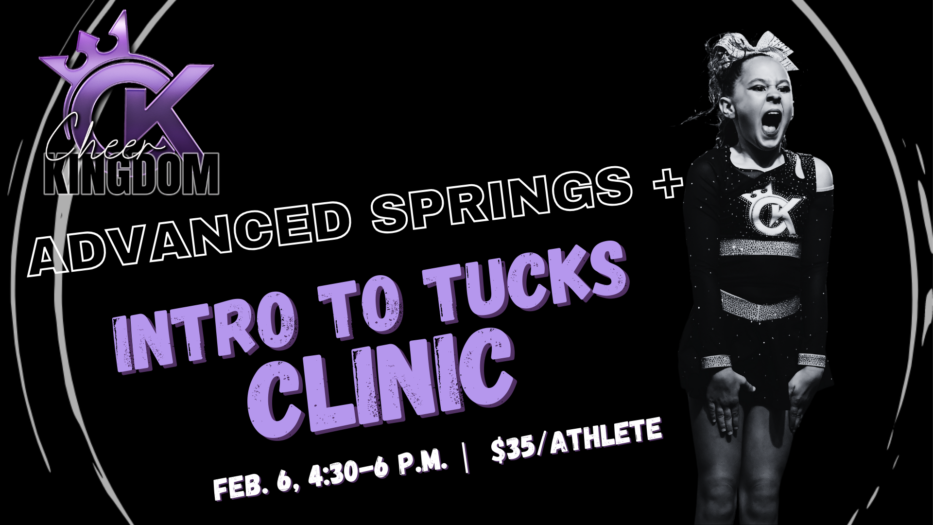 This high-energy clinic is built for athletes who are confidently working advanced springs and ready to start safe, guided progressions toward tucks. Athletes will focus on building power, improving back handspring technique, and learning tuck drills that boost confidence, height, and control.